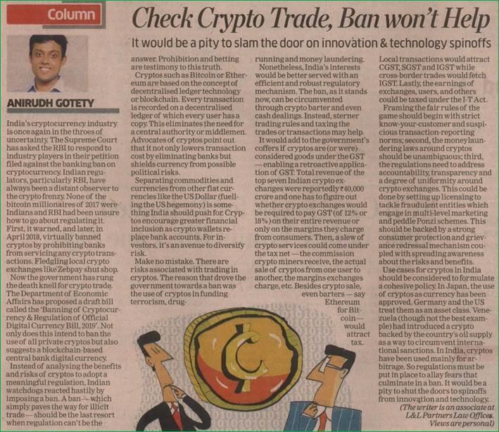 The Economic Times: Check crypto trade, ban won’t help