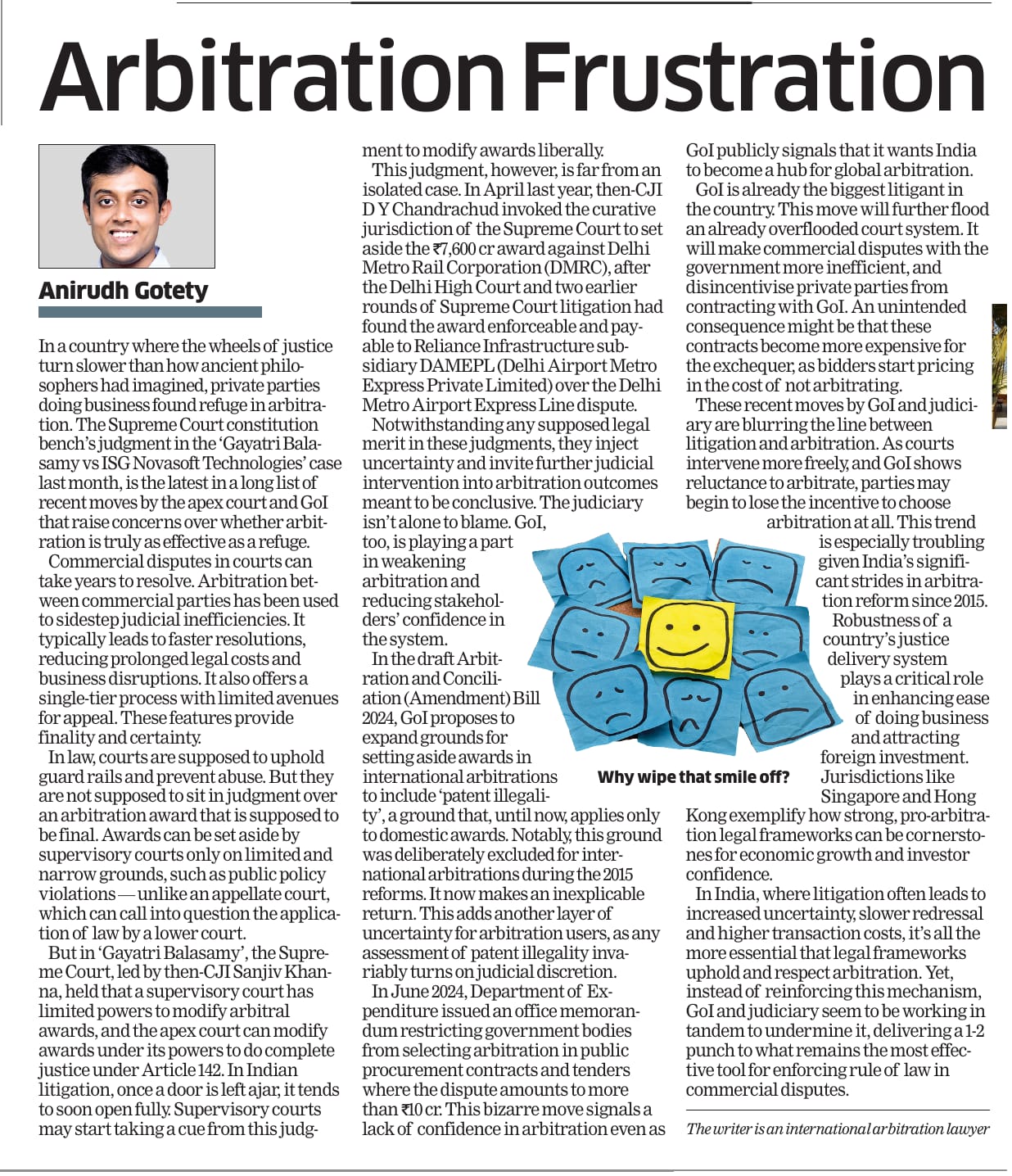 The Economic Times: Courts, govt, and the curious case of weakening arbitration softly